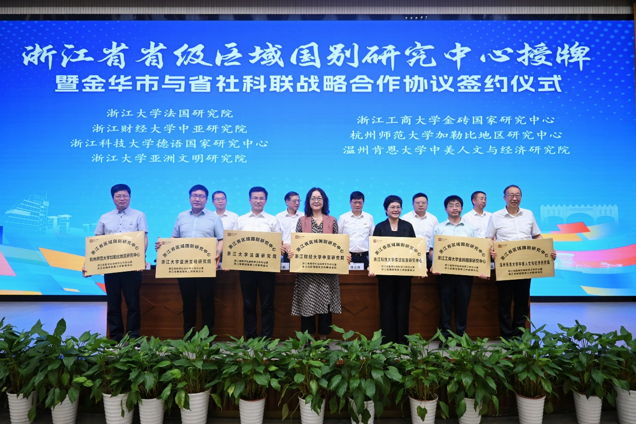 9月22日,浙江省省级区域国别研究中心授牌暨金华市与省社科联战略合作协议签约仪式在浙江师范大学正阳会议中心举行。浙江省社科联党组书记、副主席郭华巍,浙江省社科联党组成员、副主席范钧,金华市委常委、宣传部部长陈豪,浙江省社科联党组成员、秘书长陈名义,浙江省省级区域国别研究中心负责人,省社科联科研管理处、市社科联等部门负责人等出席会议。会上举行了首批20家省级区域国别研究中心授牌仪式,校党委副书记应飚、外国语学院院长周敏、科研处专聘副处长刘思琪出席会议。我校加勒比地区研究中心获批省级区域国别研究中心,标志着学校文科省级智库平台建设再添新成员,为学校区域国别研究和智库建设注入了新的动力。