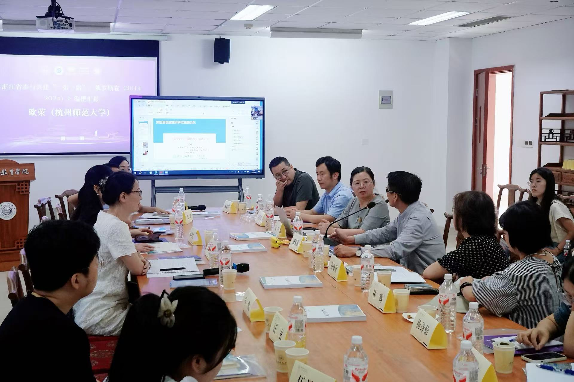 随后,国际教育学院-哈尔科夫学院党总支书记徐凌芸主持了新书编纂汇报环节。欧荣教授就《浙江省参与共建 “一带一路”:俄罗斯卷(2014-2024)》的编撰工作进展作详细汇报;环波中心研究员马腾副教授介绍了《波罗的海三国地理》的编写思路与整体框架设计。两本新著的有序推进,将进一步充实环波罗的海国家基础研究、拓展相关研究维度。会上,来自各单位的专家学者围绕两部书稿的学术价值、研究路径与应用前景展开热烈研讨,并积极建言献策,既为著作完善提供了多元视角,也充分彰显出与会人员对区域国别研究的高度重视,以及共同推动该领域研究向纵深发展的共同愿景。